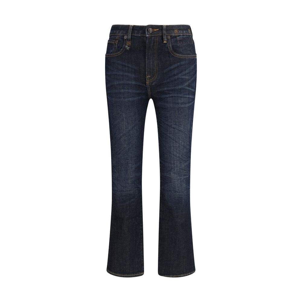 R13’s cotton Kick Fit Jeans combine a bold design with distinctive details. Made from denim, they feature an all-over plaid print that adds a twist to the classic five-pocket flare style. The front closure features a button and zipper, while belt loops along the waistband allow you to customize the fit. On the back, the iconic leather patch with the brand’s signature press-stamped signature completes the look, lending a sign of authenticity and style. A perfect garment for those seeking comfort and character in one design.
