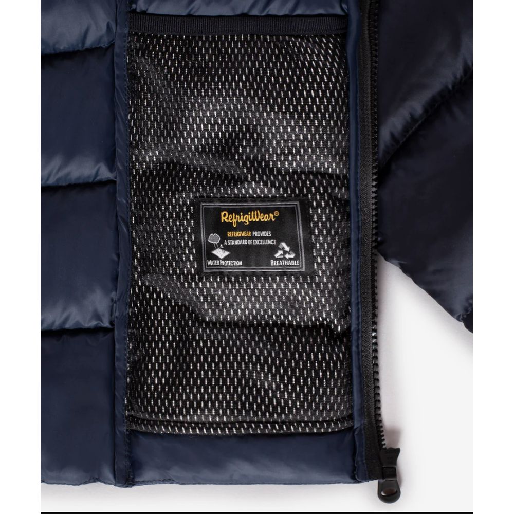 Refrigiwear Blue Nylon Women Jacket with Feather Padding and Fur Hood