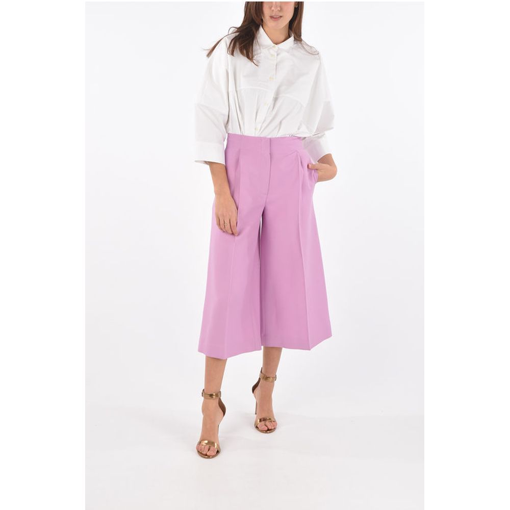 Super Blond Single-pleated Wool and Silk Flared Gaucho Pants