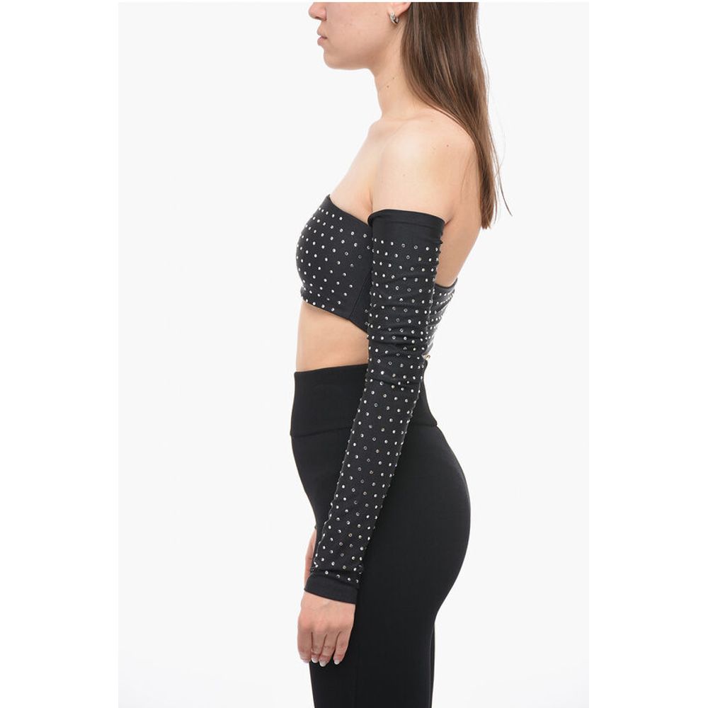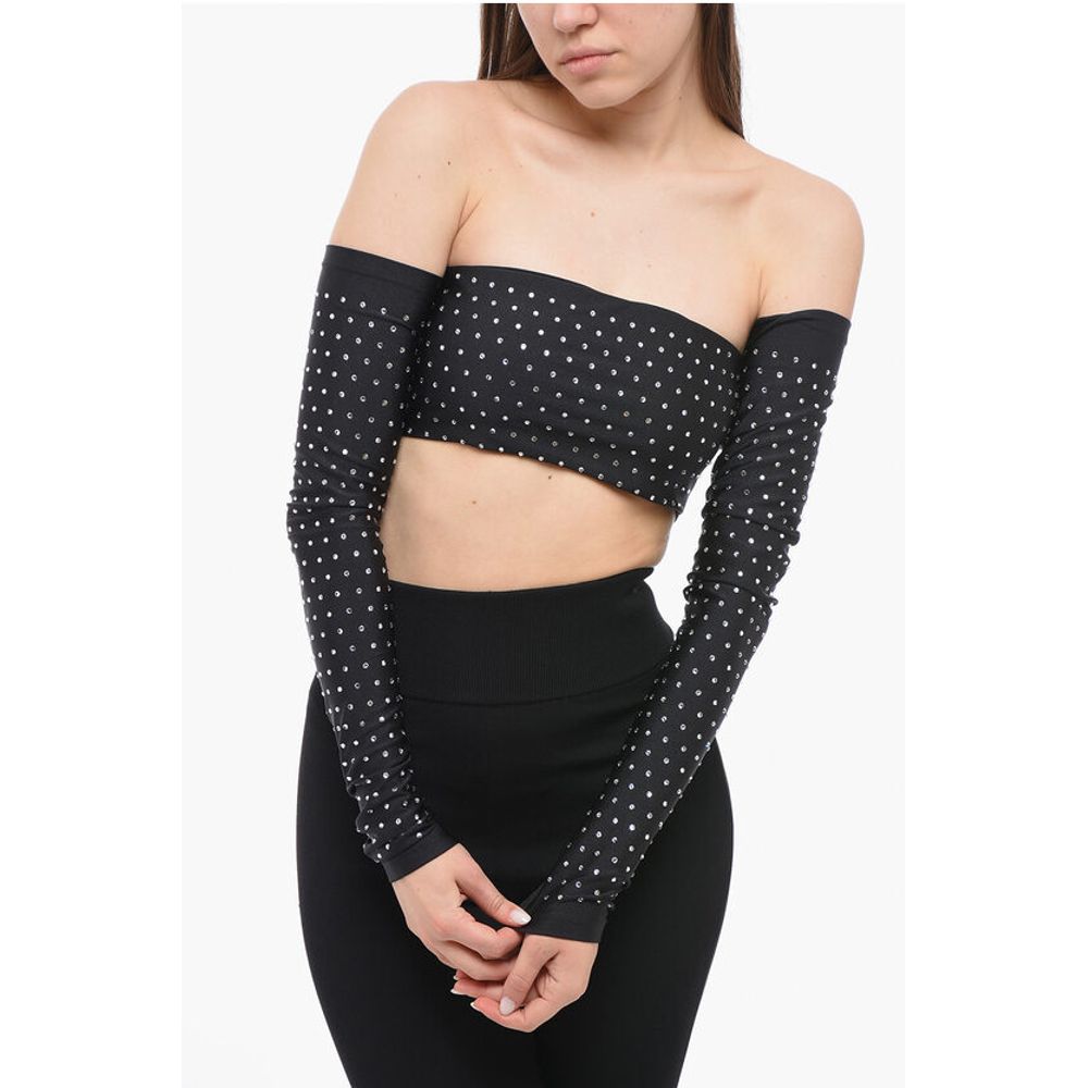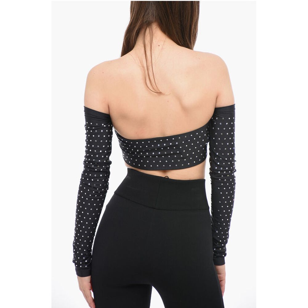 The Andamane Long Sleeved Crop Top With Rhinestones