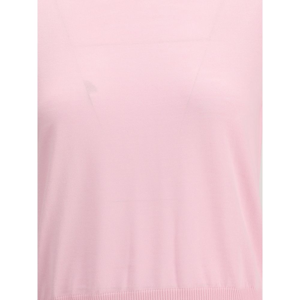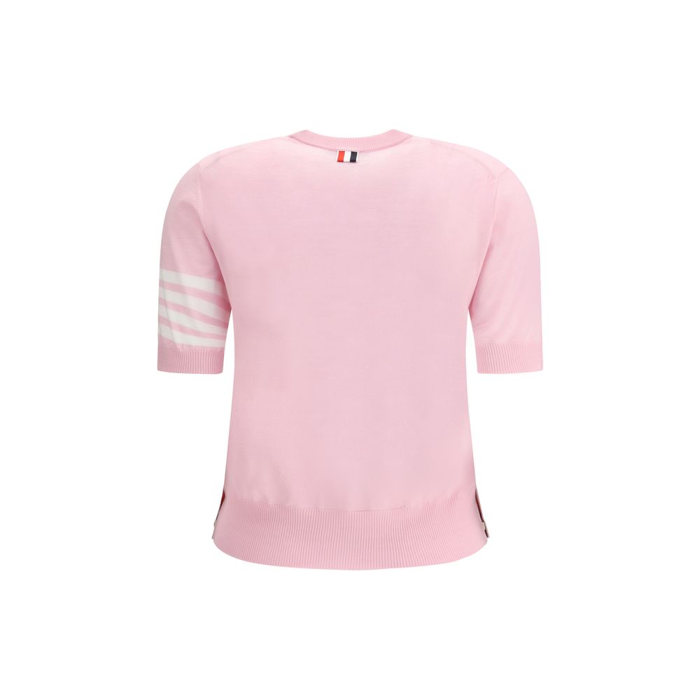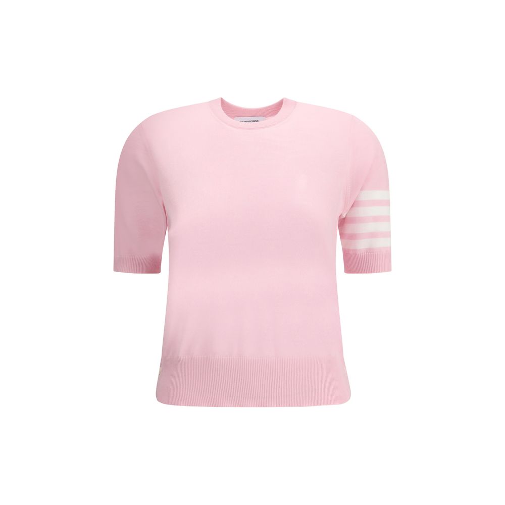 Thom Browne’s knit T-Shirt is a garment with a clean and distinctive style. With a ribbed crew neck and hems, it features the brand’s iconic bands on the left sleeve, a detail that underscores its unique identity. The ribbed hem with slight side slits adds a touch of modernity and comfort, making it perfect for a casual yet sophisticated look. A versatile must-have for any wardrobe.