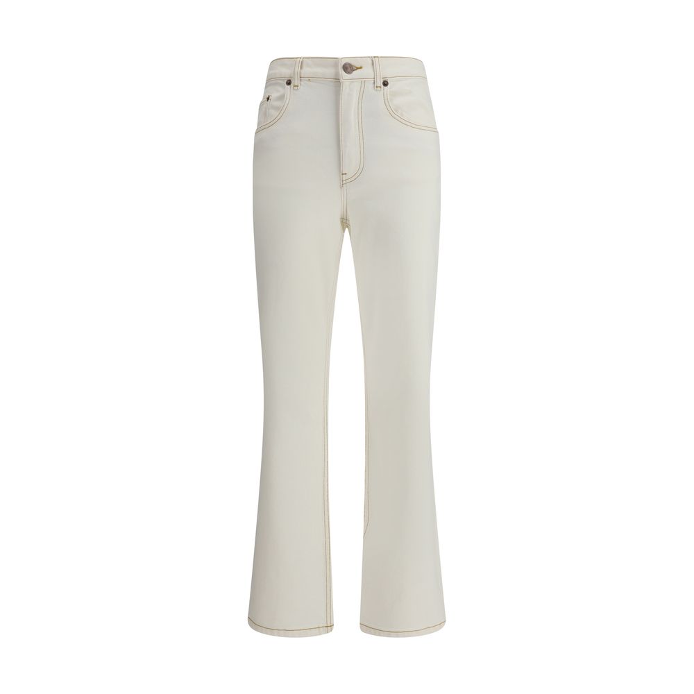 Tory Burch’s cropped flare Jeans are an item that blends elegance and comfort with a modern, stylish cut. The five-pocket style is a timeless classic, perfect for any casual occasion, while the front zipper-and-button closure adds practicality and a touch of sophistication. Waistband loops offer the option to further customize the fit with a belt, adding a stylish detail. The flare cut, which gently flares from the thigh to the bottom, and cropped length make these jeans especially versatile, perfect for enhancing a pair of dress shoes or sneakers.