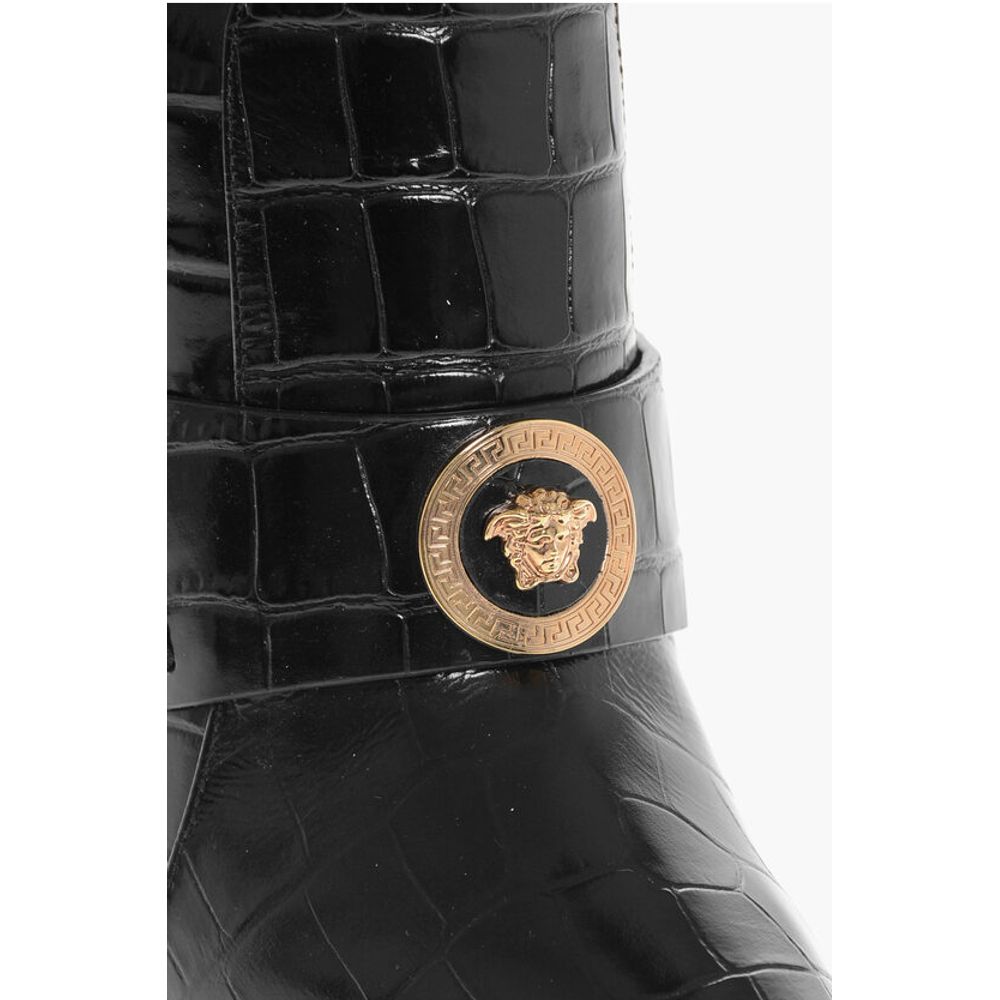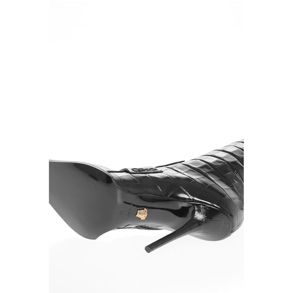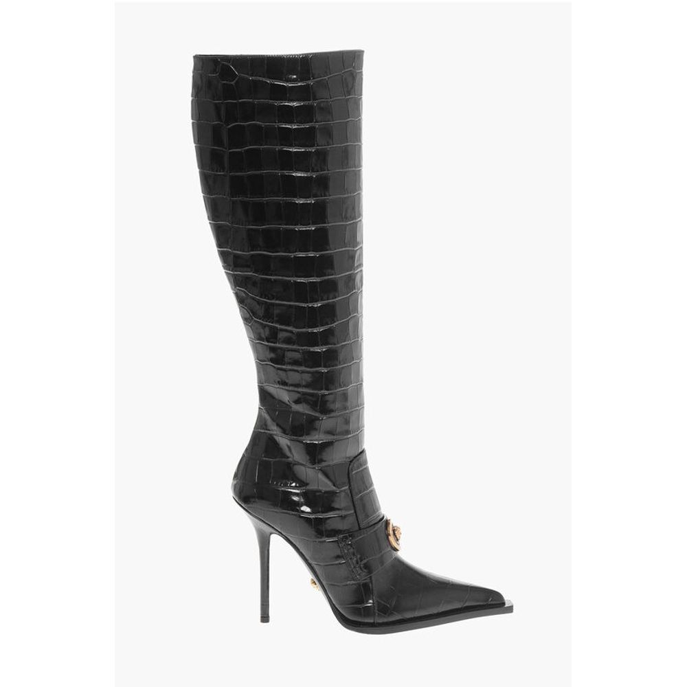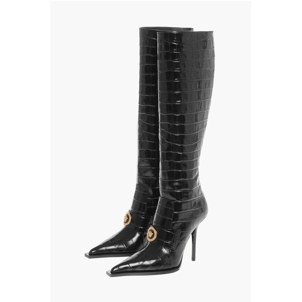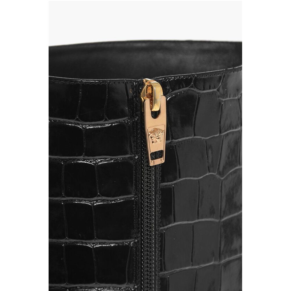 Versace Crocodile Effect Printed Leather Under the Knee Boots 11cm