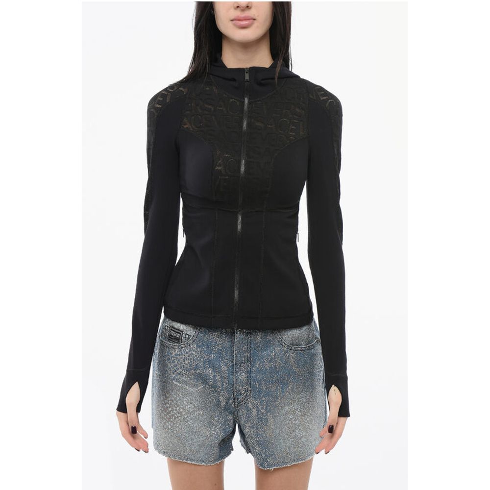 Versace Tech Hoodie Top with Logo Motif