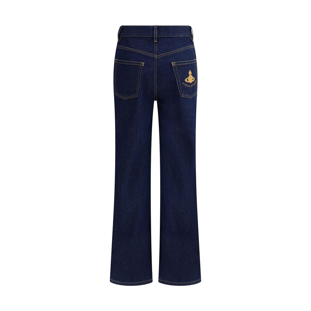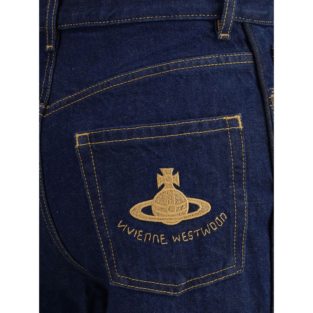 Vivienne Westwood’s Jeans are a flare style that combines style and comfort. With a zip-and-button front closure, the high waistband and belt loops ensure a perfect fit. The classic five pockets are complemented by the brand’s logo and signature stitched on the back, adding a distinctive touch. This sleek and modern style is perfect for those looking for a bold and original look.