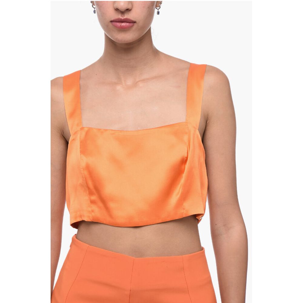 WOERA Side Zipped Silk Crop Top
