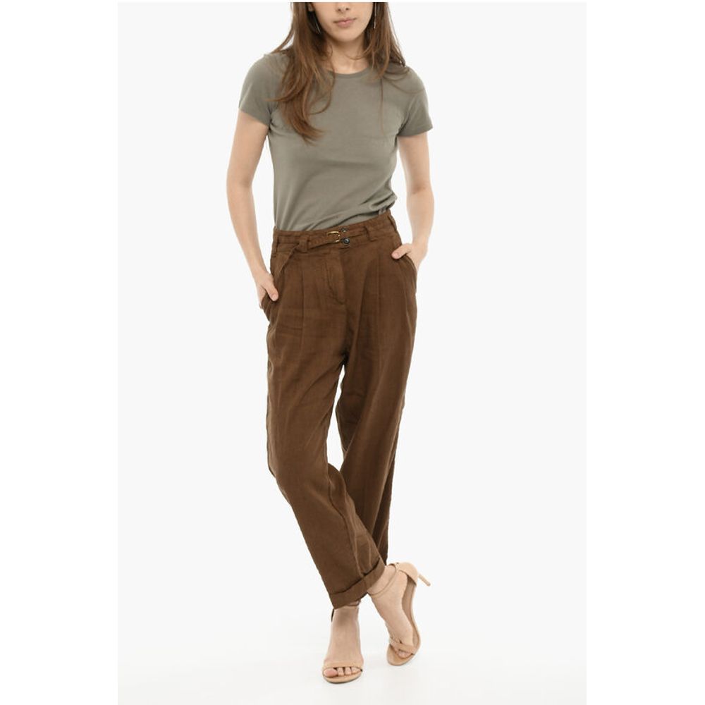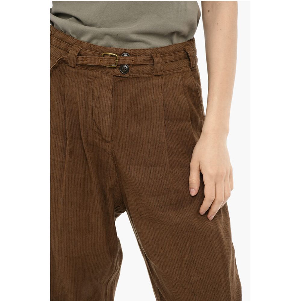 Woolrich Doluble Pleated Linen and Cotton Pants with Belt